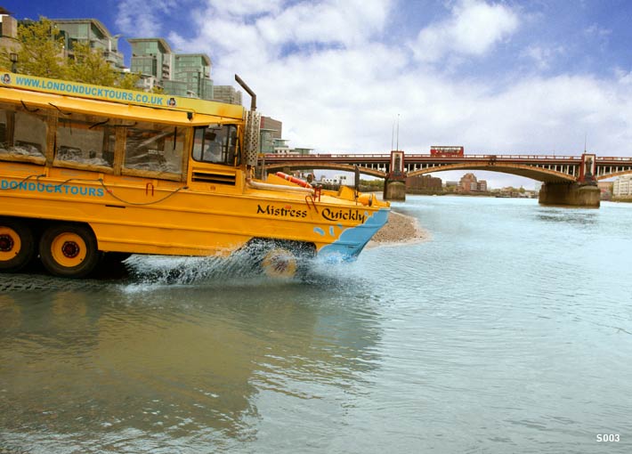 The amphibious vehicle used by London Duck Tours on the roads and river